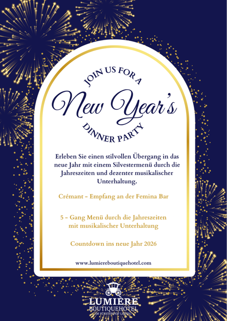 Erleben Sie einen stilvollen Übergang in das neue Jahr mit einem Silvestermenü durch die Jahreszeiten und dezenter musikalischer Unterhaltung